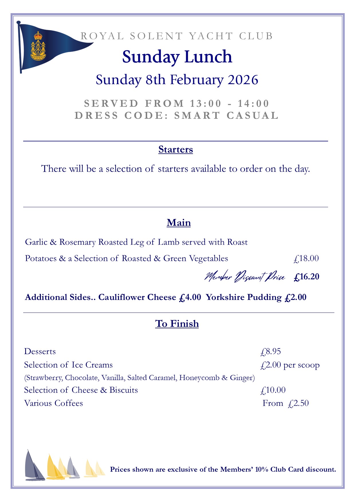 There will be a selection of tempting starters and irresistible desserts available to order on the day. A vegetarian option is available on request in advance - please note that this will be a set dish & not necessarily a vegetarian roast.