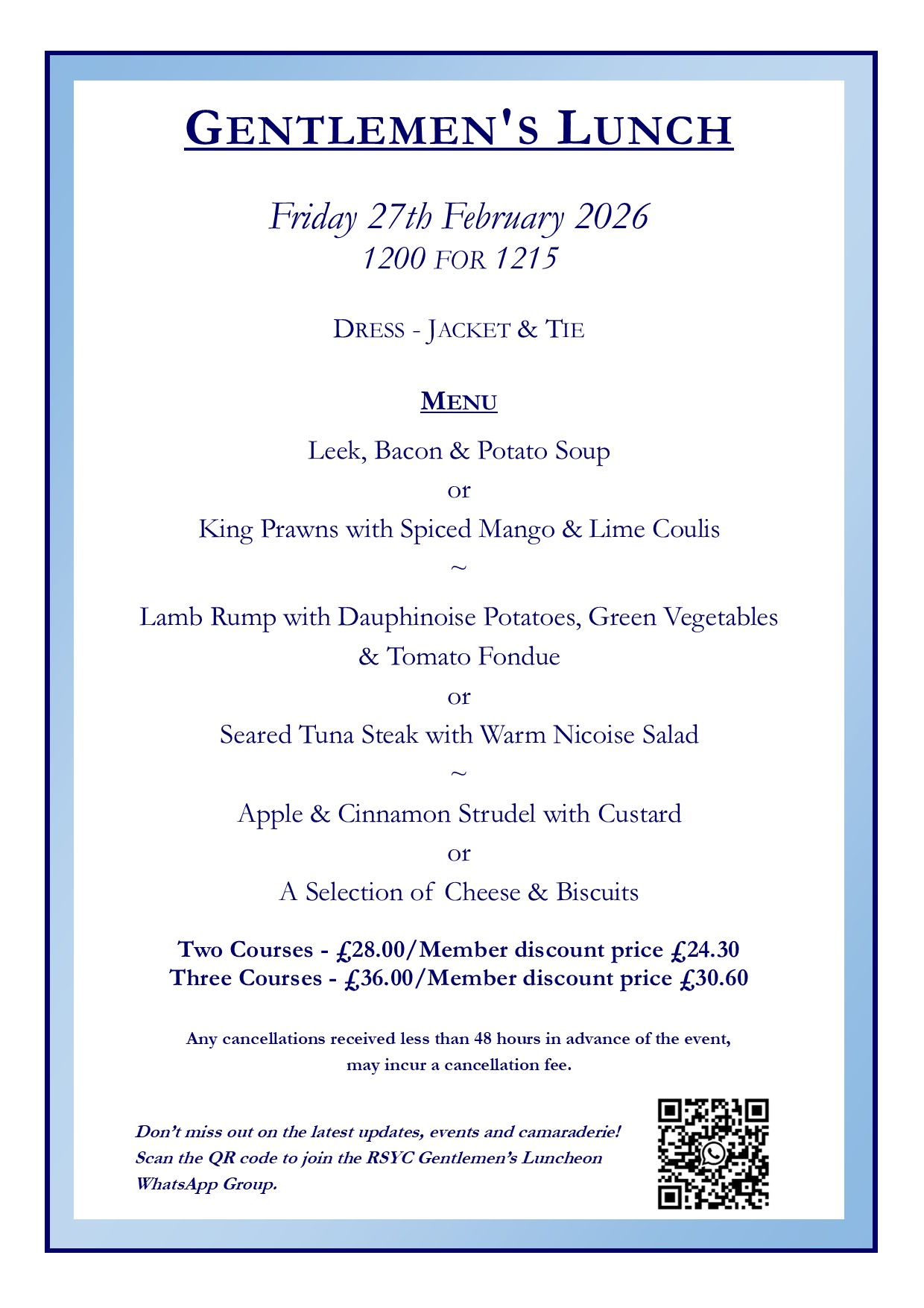 Scan the QR code to join the RSYC Gentlemen’s Luncheon WhatsApp Group.