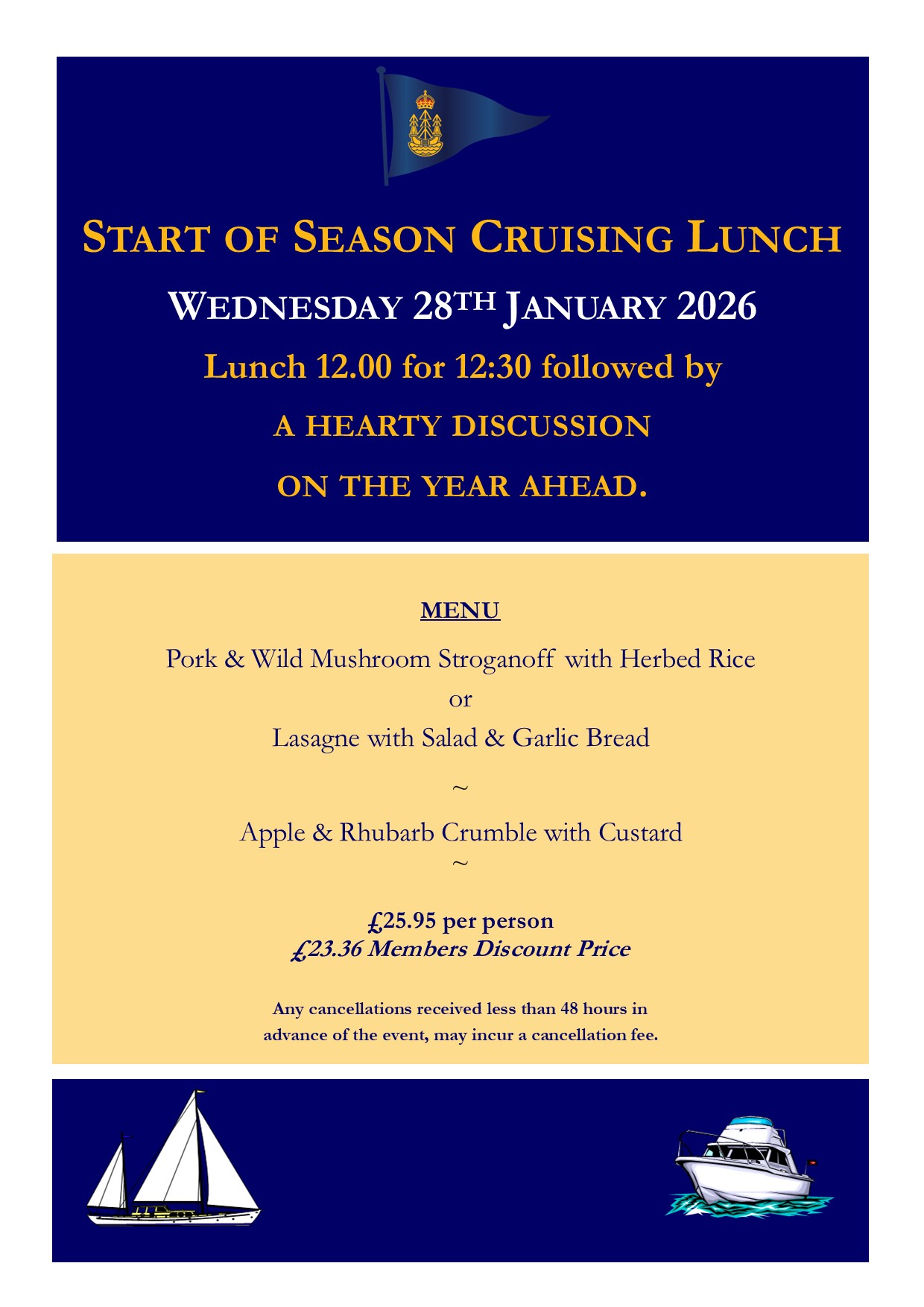 To open the 2026 Sailing Season; please join us for lunch and a hearty discussion on the year ahead