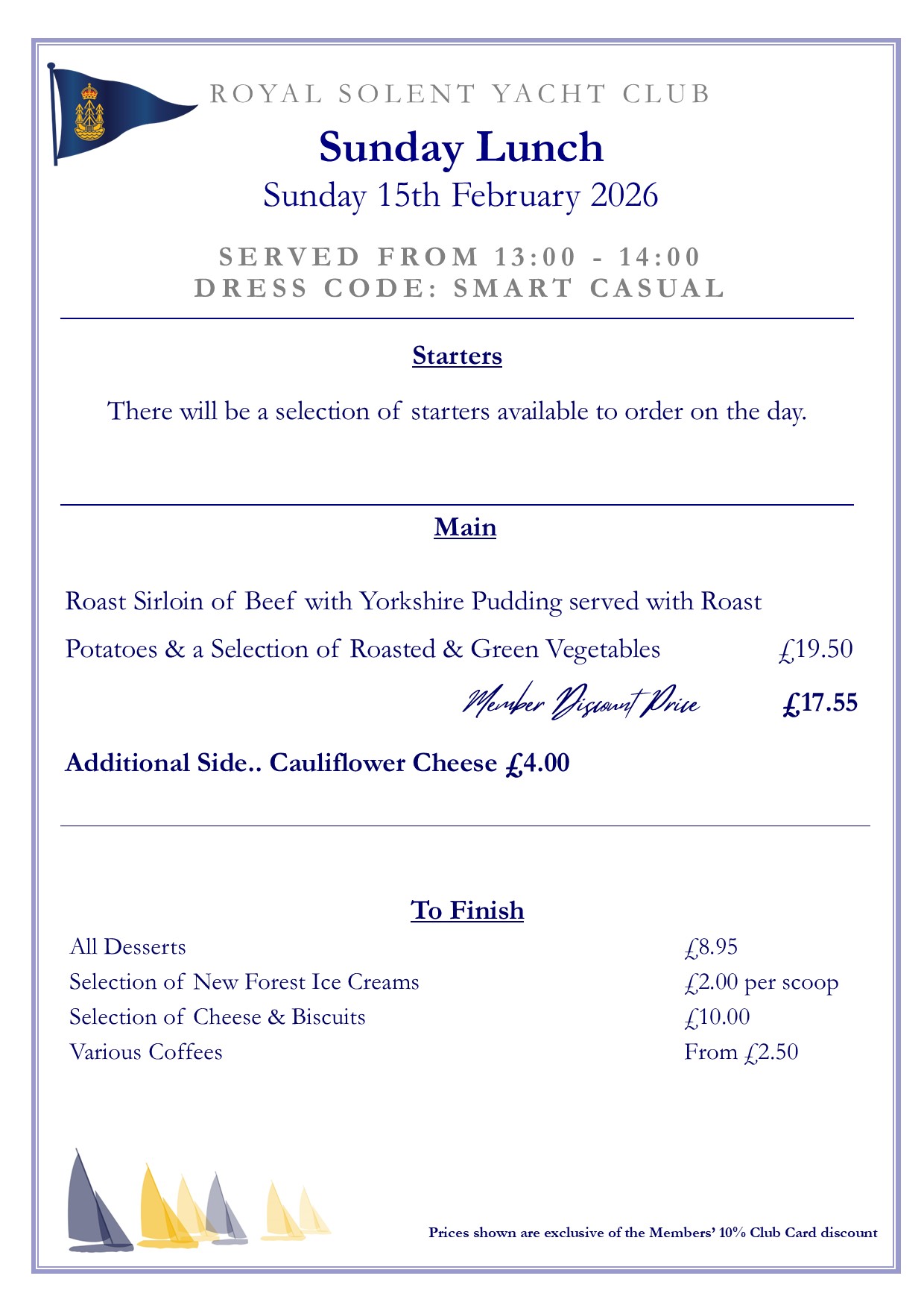 The Club’s daily menu is also on offer before 13:00.
