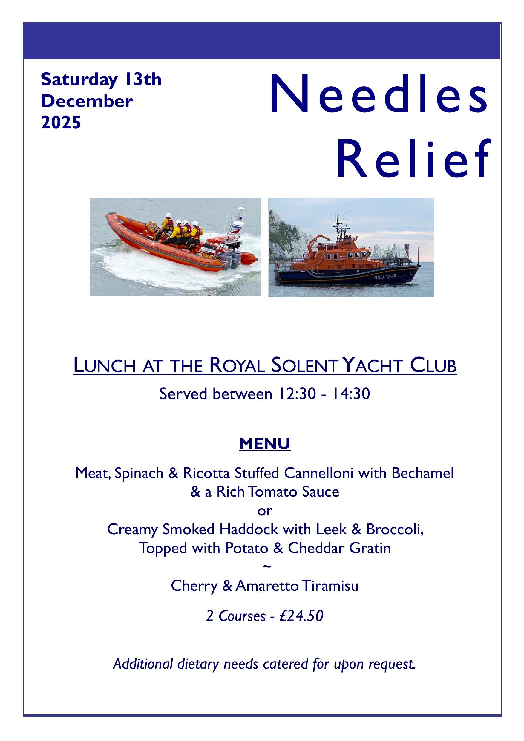 Cancellations must be received by 12 noon on Wednesday 10th December. Any cancellations received after this time, may incur a cancellation fee.