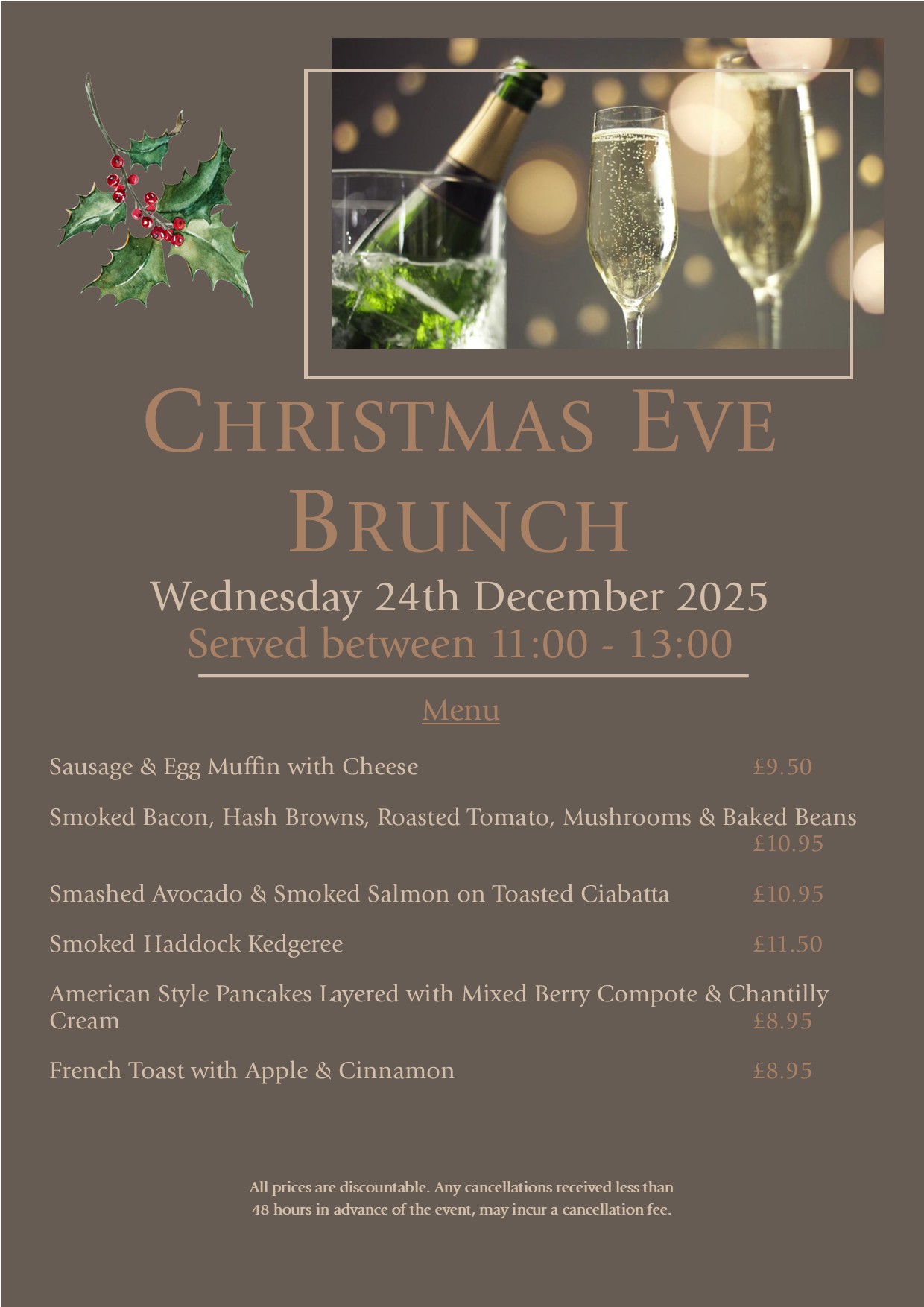The Christmas Eve Brunch will be served between 11:00 and 13:00.