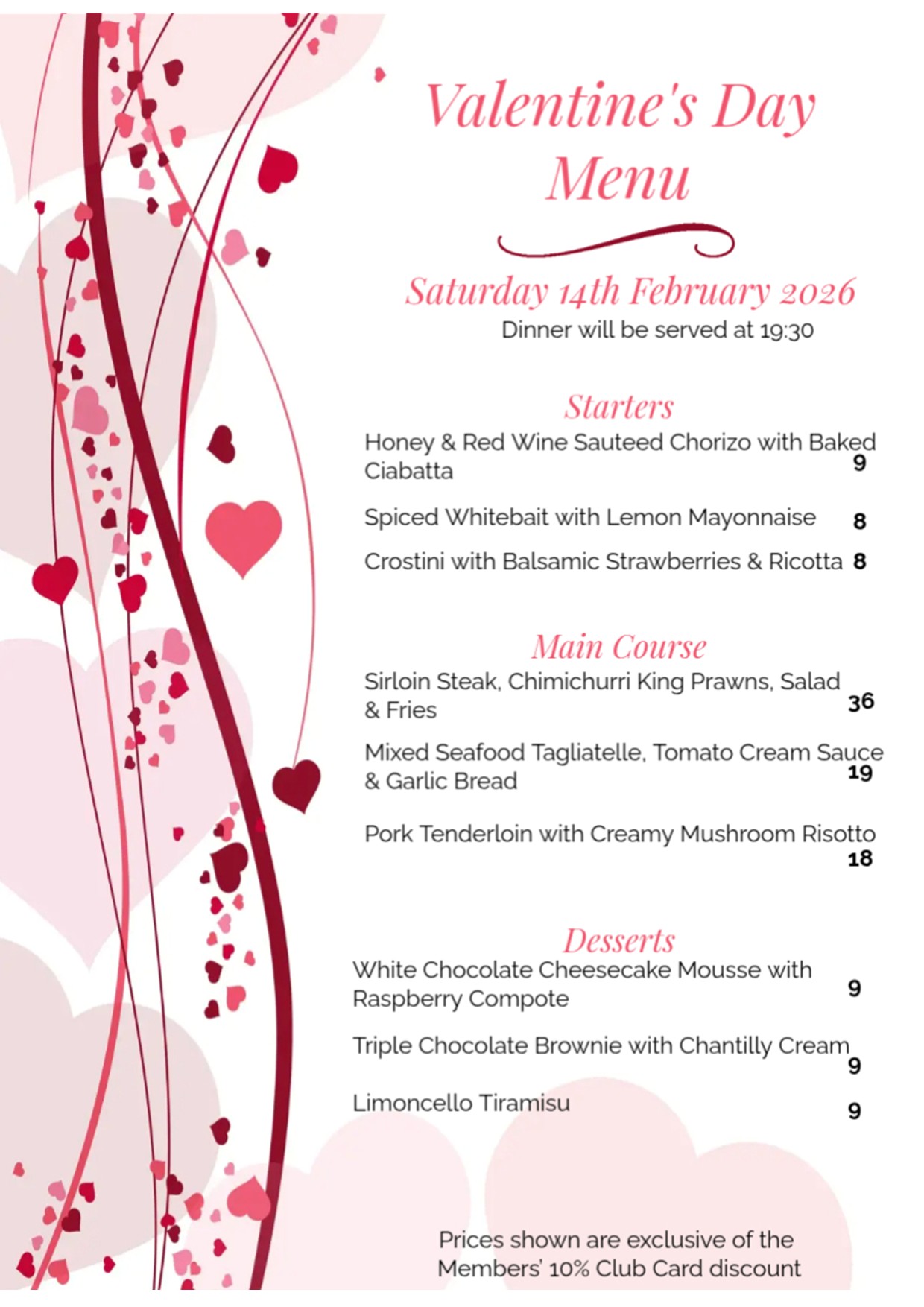 Join us for a Valentine’s Supper and enjoy a delicious menu in