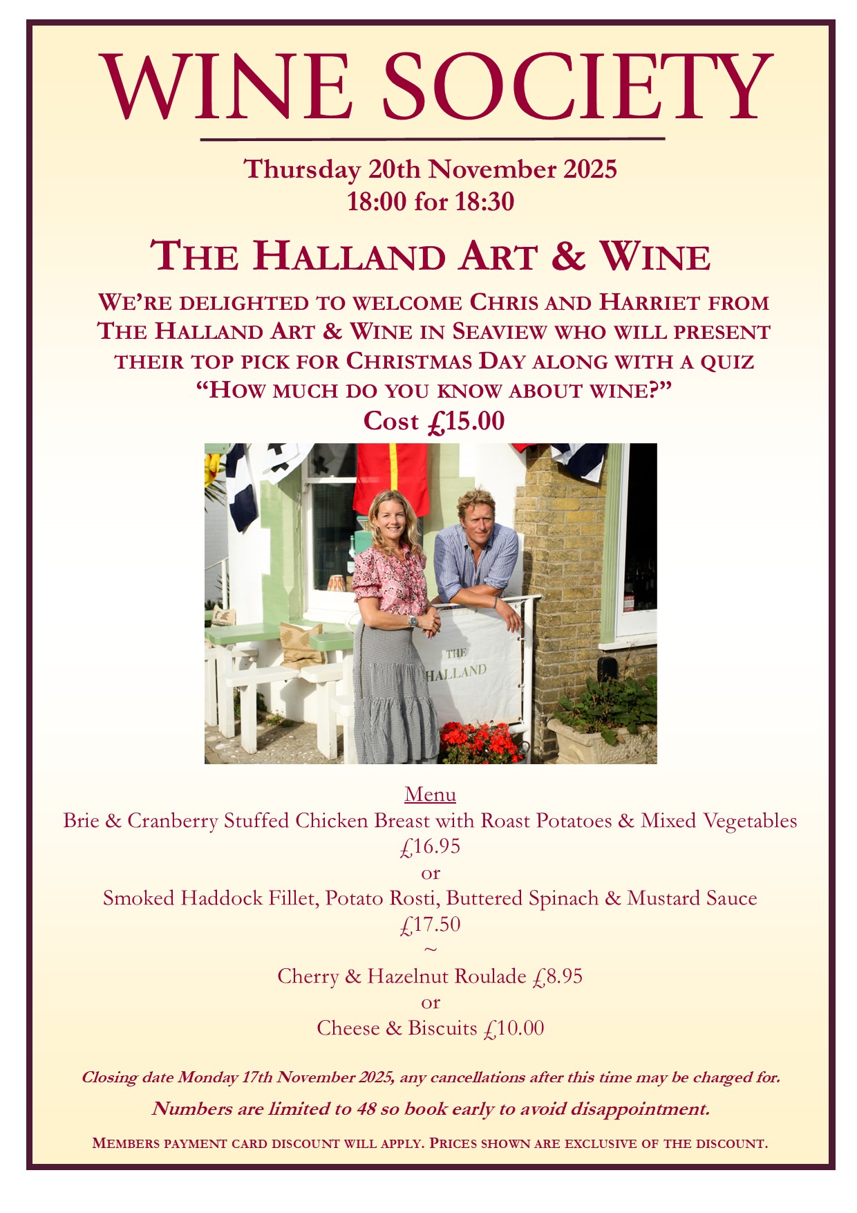 To book online for the Wine Society, please click here.