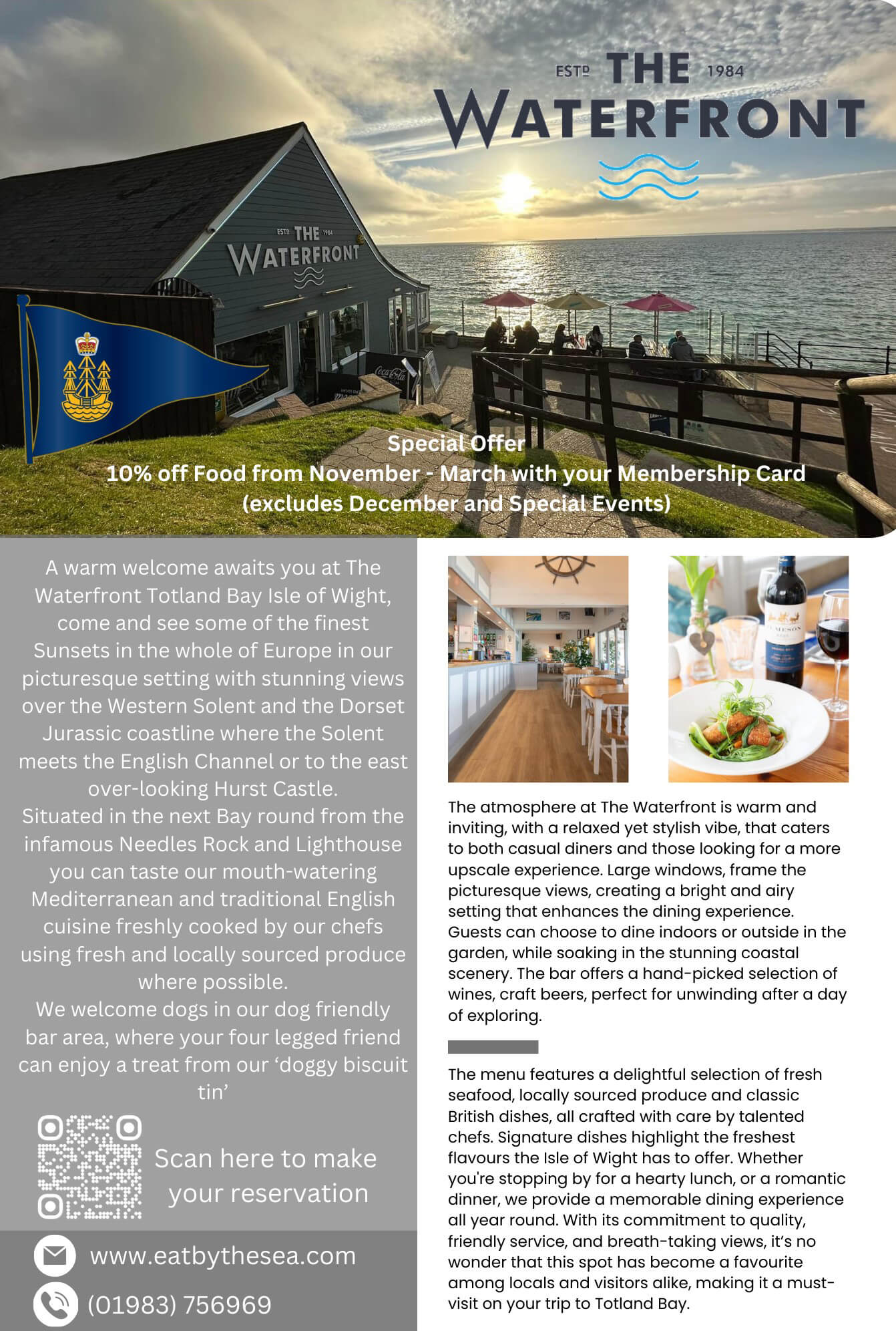 5. 10% member discount off food at The Waterfront, Totland Bay, Isle of Wight (Nov-March) – https://www.eatbythesea.com